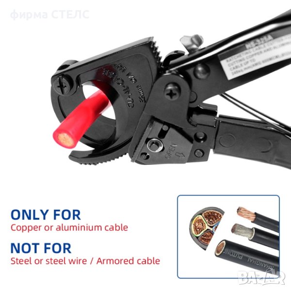 проводници много-жилни кабели. Не е подходящ за стоманена тел и стоманени