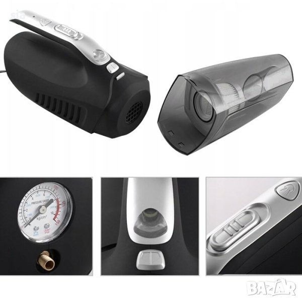 - 4 функции: прахосмукачка, фенерче, компресор, манометър за гуми.
