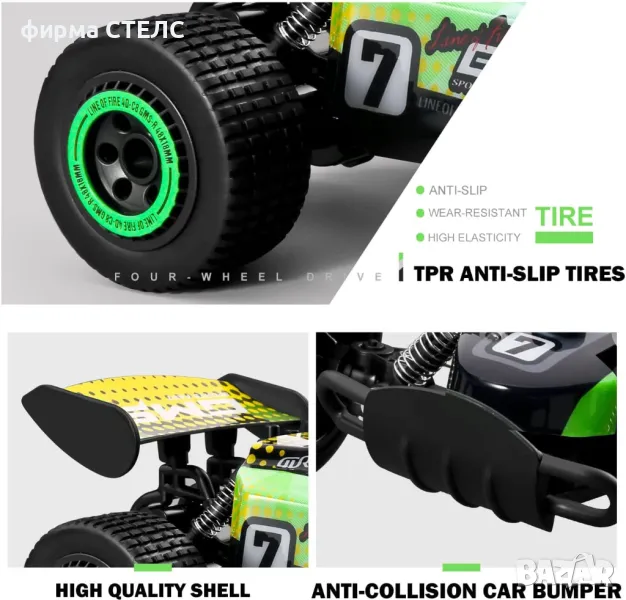 плъзгане облекчават ефективно удара на тази RC кола при шофиране. Те