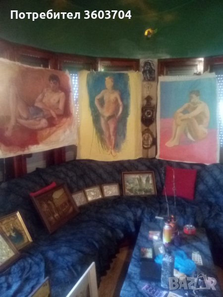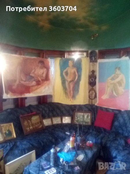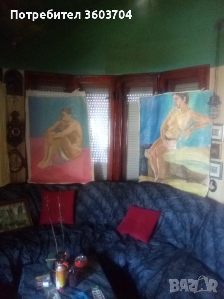 Четири рисувани картини стари неизвестен автор рисуване на платно с маслени бои големина 120 на 100 см колекция декорация хубави картини 120 лв струва една картина