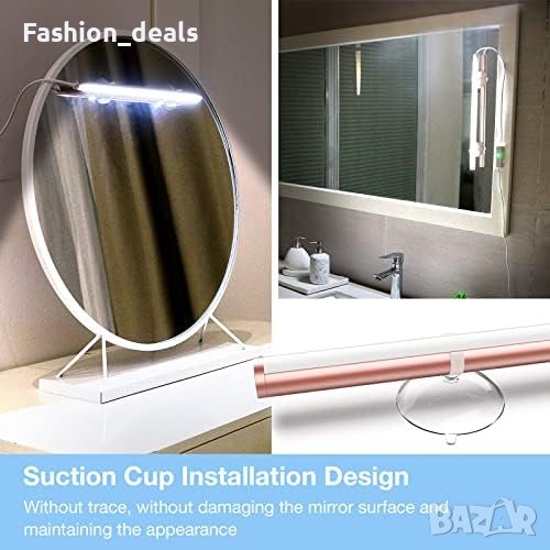 Симулиране на дневна светлина за по-добро представяне на грима 🔆 Регулируема яркост с 8 нива: 20%-100% с функция памет 💕 360° регулиране на ъгъла на светлината за персонализирано осветление 🎁 Портативно осветление с включена чанта за лесно пренасяне 💕 Инсталация със засмукваща чашка без следи и щети по огледалото