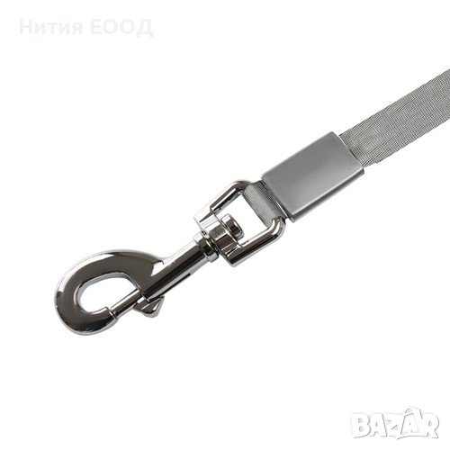 - ЗДРАВА ЛЕНТА + Метален карабинер – ремъкът е изработен от здрава лента. В края на лентата има хромиран карабинер за лесно закрепване на каишката към нашийника или колана.