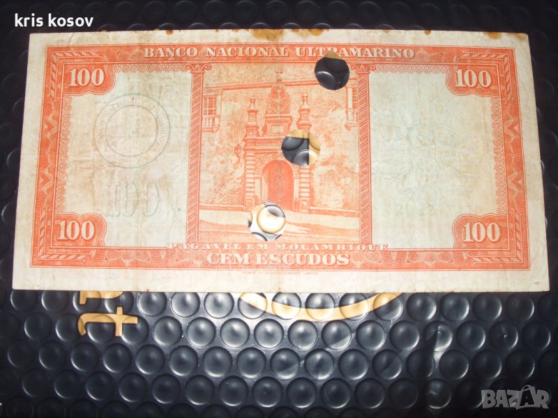 Входът на Fort São Sebastião в центъра, банков печат вляво
