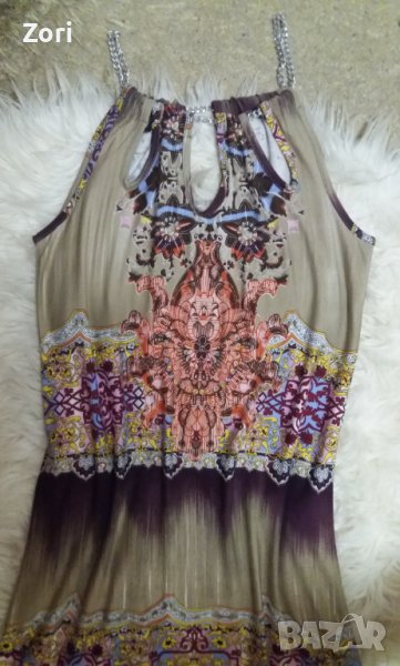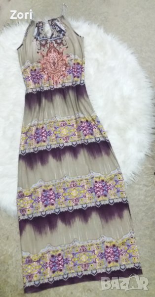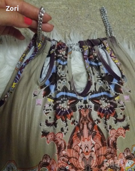 КРАСИВА дълга рокля в пейсли принт с презрамки от сребристи синджирчета → Обява 41521008