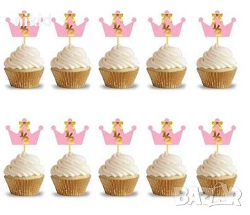 10 бр 1/2 половин година годинка корона рожден ден бебе бебешки топери топер мъфини кексчета торта → Обява 41523311