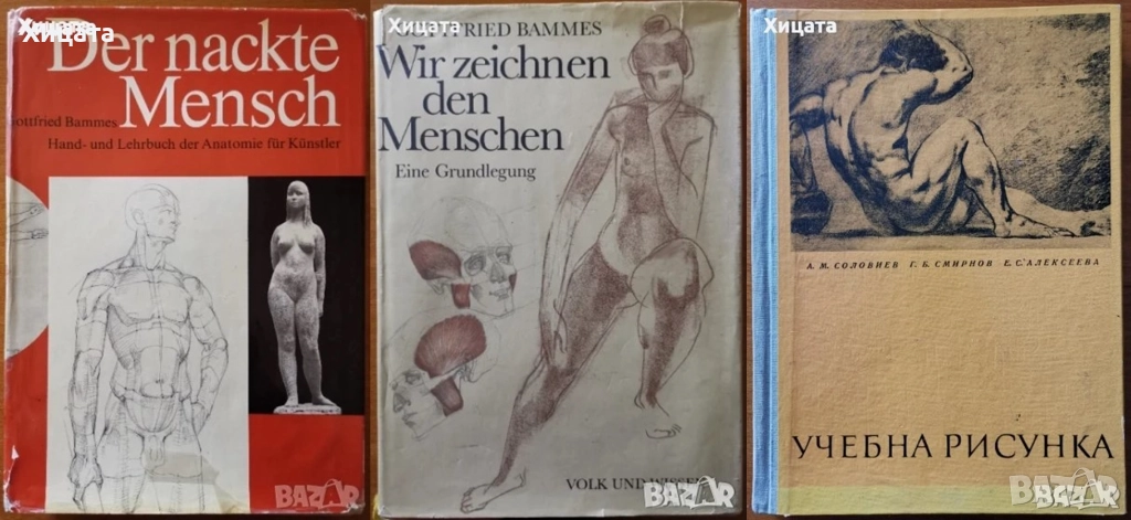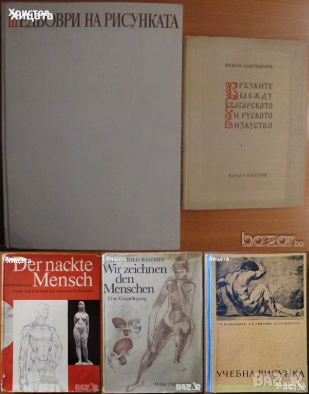 Der nackte Mensch,Gottfried Bammes,VEB Verlag der Kunst,1982г.474стр.Човешкото тяло,Готфрид Бамес,Немски език.Отлична със забележки по обложката! - 380лв. Wir zeichnen den Menschen.Eine Grundlegung,Gottfried Bammes,Volk und Wissen,Berlin,1989г.312стр.Отлична с леки забележки по обложката! - 220лв. Пластична анатомия,Кр.Чоканов - 100лв Атлас по анатомия на човека / Атлас анатомии человека/ Том 2,Р.Д.Синельников,Издателство Медицина,1966г.472стр.Изданията са в 3 тома! - 70лв Handatlas der Anatomie des Menschen:Zweiter Band,Werner Spalteholz,,Лайпциг,1939г.536стр.Анатомически атлас Том 2,Вернер Шпалтехолц - На немски език! - 70лв Учебна рисунка,А.М.Соловиев,Г.Б.Смирнов,Е.С.Алексеева,Наука и изкуство,1967г.248стр.Отлична! - 65лв. Шедьоври на рисунката ХІХ-ХХ век,изд.Корвина, Будапеща, 1962г. 94 репродукции - 85лв;История на изкуството,Борис Колев,Техника,1971г.400стр. - 70лв. История на изкуството Кратък курс,Борис Колев,Техника,1961г.308стр. - 60лв. Критика на абстрактното изкуство и неговите теории,Атанас Стойков,Наука и изкуство,1963г.284стр. - 60лв Връзките между Българското и Руското изкуство,Никола Мавродинов,изд. Наука и изкуство, 1955г. 112 черно-бели илюстрации - 70лв.История на изкуството.Том 1-4,Михаил Алпатов,Български художник,1981г.-1983г.,1142стр. - 100лв. Антично изкуство,Егейско изкуство. Изкуство на древна Гърция. Изкуство на древния Рим,Борис Ривкин,Наука и изкуство,1983г.351стр.- 30лв. Първобитно и традиционно изкуство,В. Б. Мириманов,Наука и изкуство,1985г.256стр. - 30лв. Древноиндийска цивилизация,Г. М. Бонгард-Левин,Наука и изкуство,1986г.340стр. - 30лв.