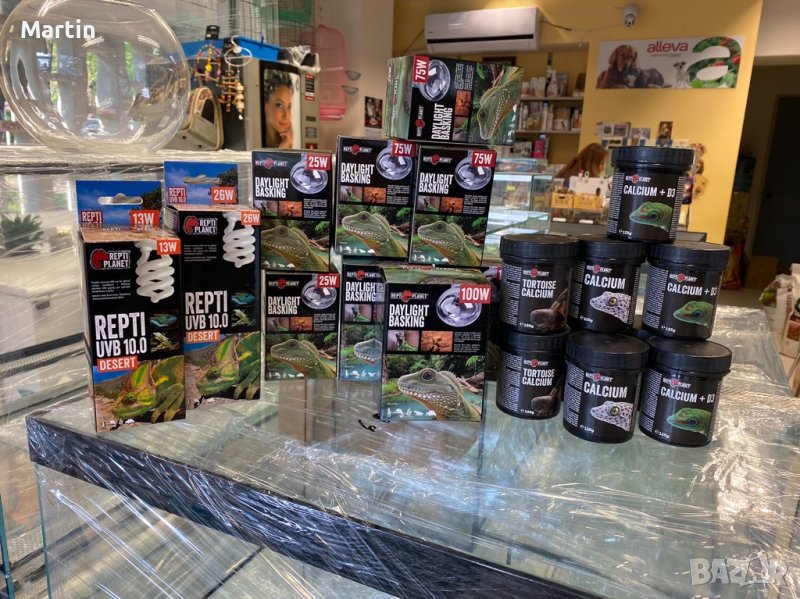 Продавам терариум. Продавам калций и витамини за влечуги. Продавам УВ крушка, УВ лампа, UV крушка, терариум, крушка за затопляне. Змии, гущери, варани, тегу, жаба, костенурки. Оборудване за терариум. Цената е според размера.