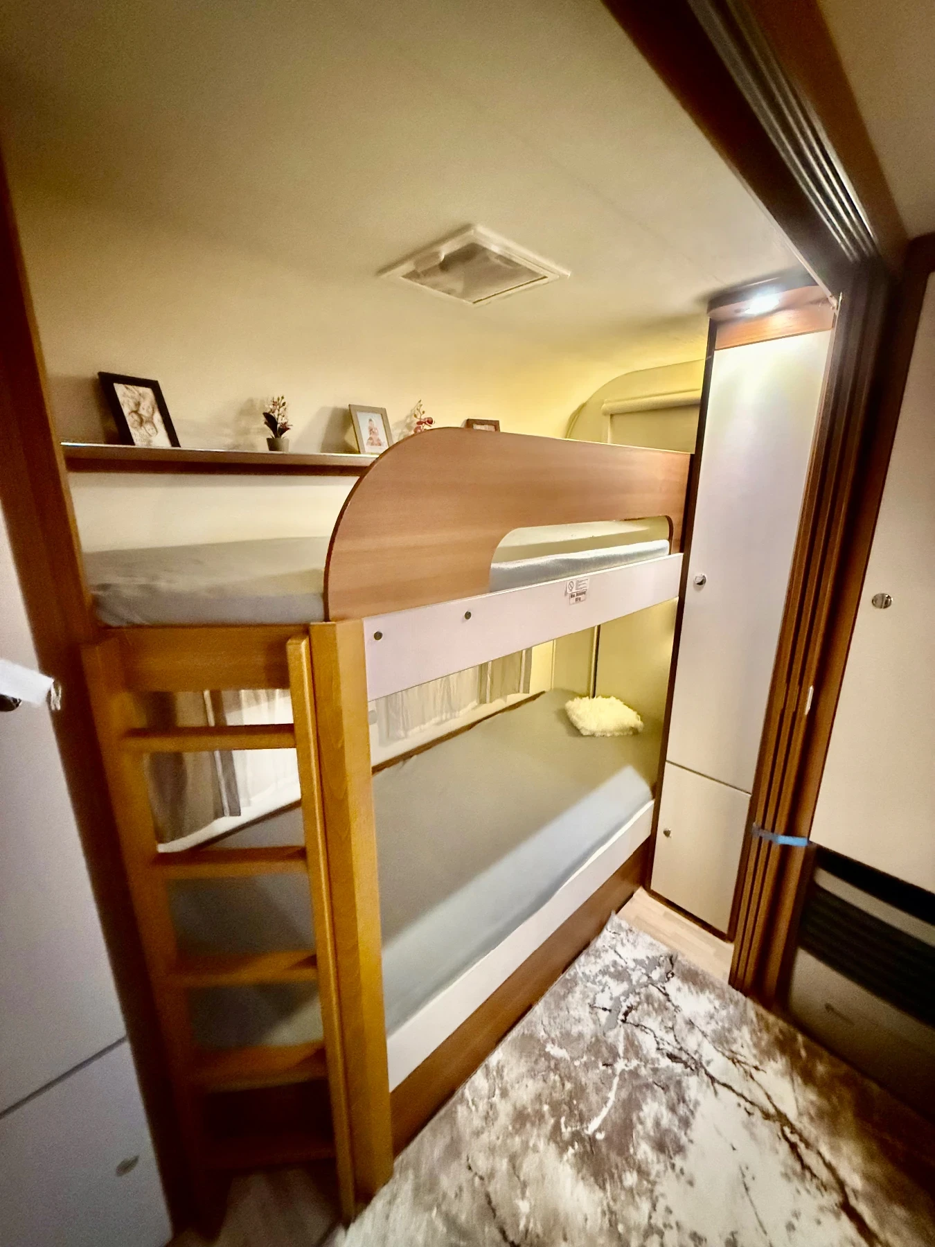 Марка: LMC Musterland Модел: VIVO 522 K Модел на производство: 2017 г. Първа регистрация: 15. 06. 2017 г. ? ? ТОП СЪСТОЯНИЕ ? ? . Като нова , перфектен интериор и екстериор! Нов Внос от Полша ? ? ПАРАМЕТРИ: - ширина: 2. 45 м. - дължина: 6. 20 м (без теглича) - собствена маса: 1507 кг. - максимално допустима маса: 2000 кг. РАЗПОЛОЖЕНИЕ: В задната част двуетажни легла (с размер 216 x 80), по средата сепаре трансформиращо се в легло за 2 възрастни 196 х 112 и предната част голяма френска спалня 200x157 - Брой спални места: 6 бр. Санитарно помещение: - мивка - стационарна химическа тоалетна. - резервоар за чиста вода 80 литра външно пълнене - бойлер Truma на 220v КУХНЕНСКИ БОКС: - голям хладилник с отделна камера 142л Тhetford 12/220v и газ. - мивка - 3бр. котлони на газ. - шкафчета с органайзери за багаж ОТОПЛЕНИЕ: печка на газ с обдухване на цялата каравана. ЕКСТРИ И АКСЕСОАРИ; - инсталация с тягов
