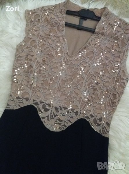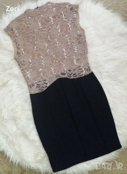 ИЗКЛЮЧИТЕЛНО КРАСИВА и СТИЛНА рокля в черно с бежова дантела и пайети по нея → Обява 41526210