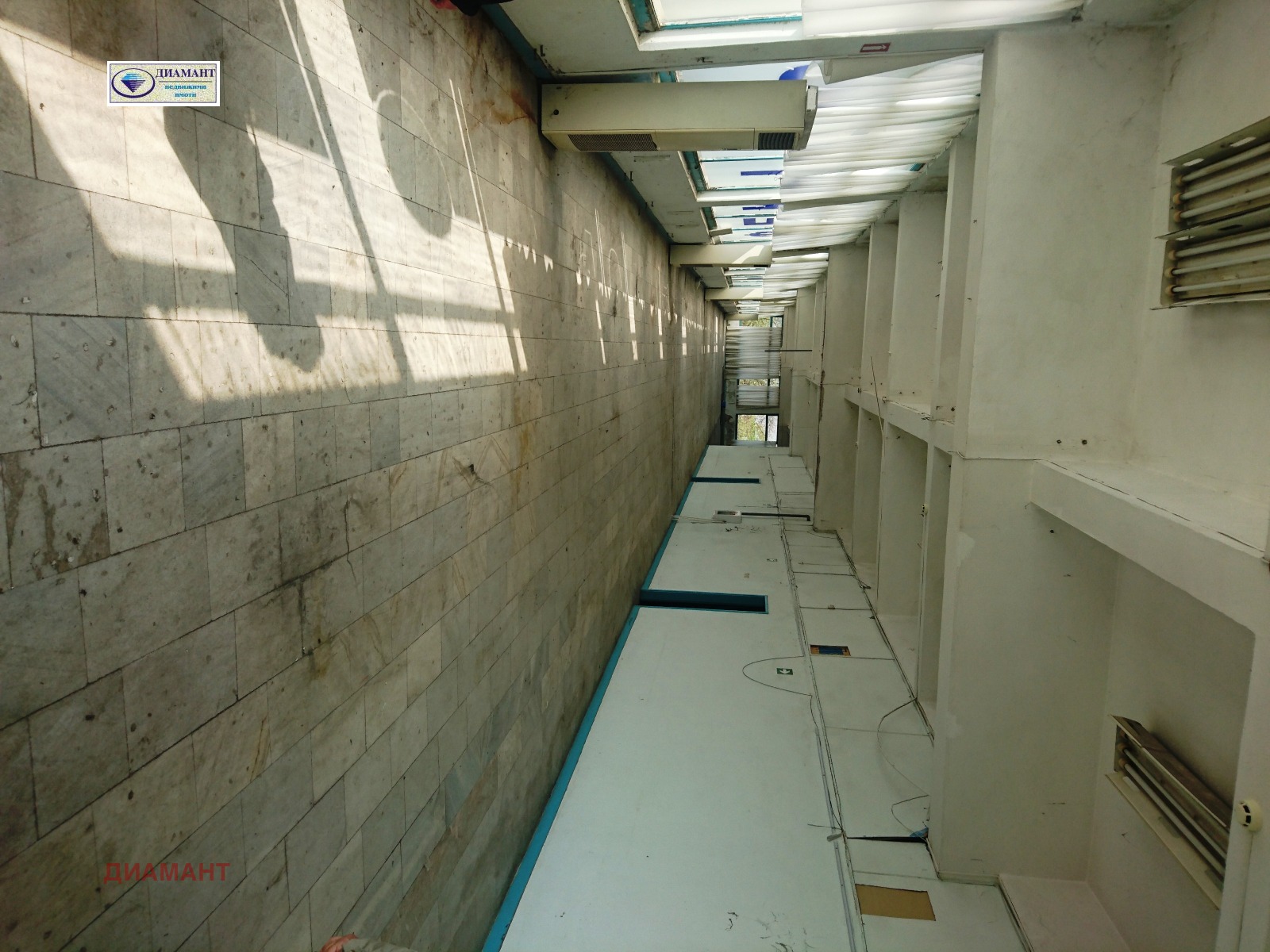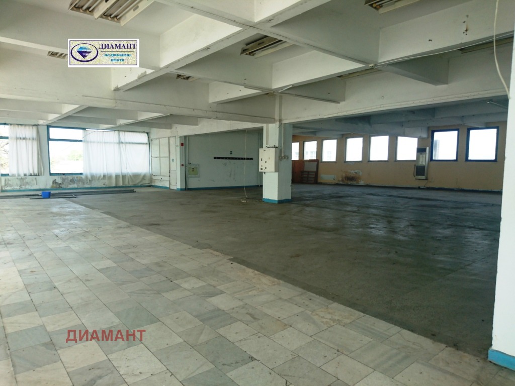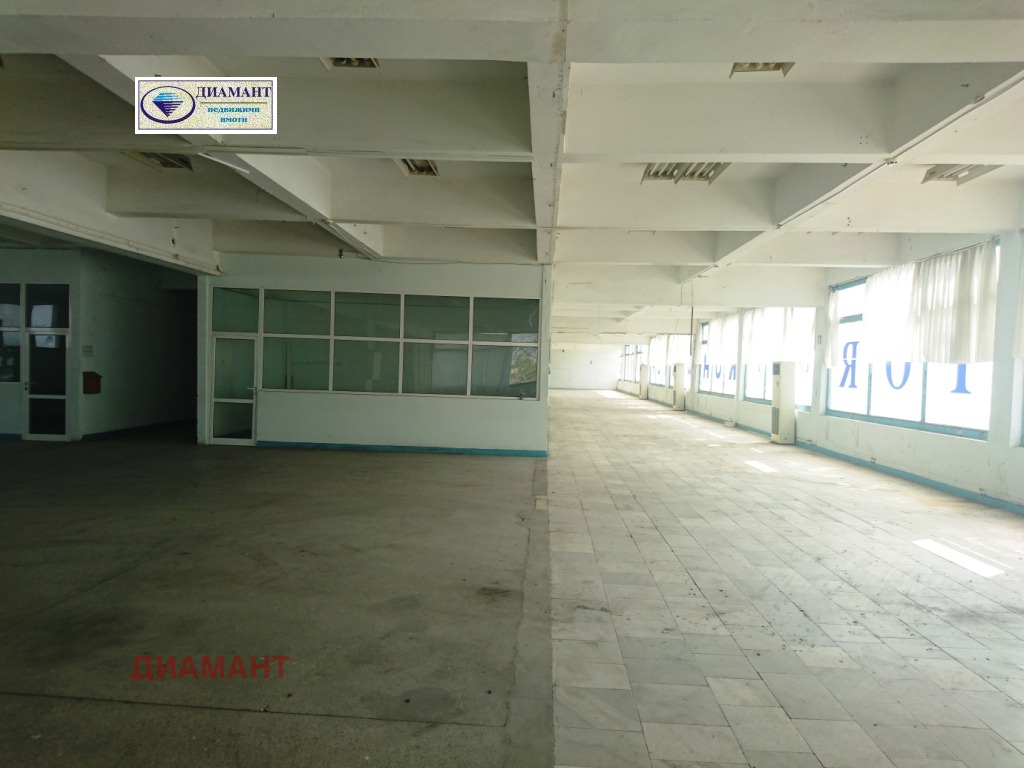 Цена 1.7 евро/м2 с вкл. ДДС за наемане на площ над 200 м2.. За по-малки квадратури цената е 1.6 Е./м2. + ДДС. Предлагана площ - от 70 м2. до 1880 м2.. При наемане на площ под 200 м2. цената на квадратен метър ще се договаря. Имотът е разположен на оживен булевард и има възможност за поставяне на рекламни пана на фасадата му. Предлагат се складови площи на ет. 2 и в сутерен. На втория етаж се предлагат три големи зали, офиси, складове и санитарни възли с площ до 1800 кв.м.. Подовете са с мрамор, отопление и охлаждане - от колонни климатици /възможно е и на газ/, товарен и пътнически асансьор. Помещенията имат нужда от освежаване. Подходящо е за шоурум, магазин, шивашко предприятие, леко производство, склад и др. дейности. Помещението може да се използва денонощно. Възможно е наемане на склад в сутерен над 300 кв.м. - цена 1 Е/м2.+ ДДС, трифазен ток.