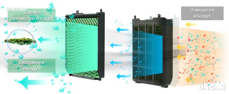 филтри. Отстранява фин прах, цветен прашец, тютюнев дим. Прмехва дори най-малките частици, по-големи от 20 nm (0,00002 mm).
