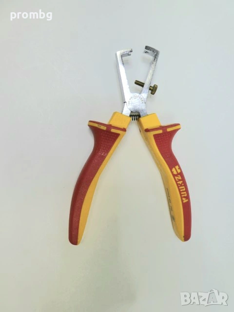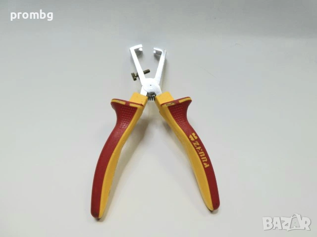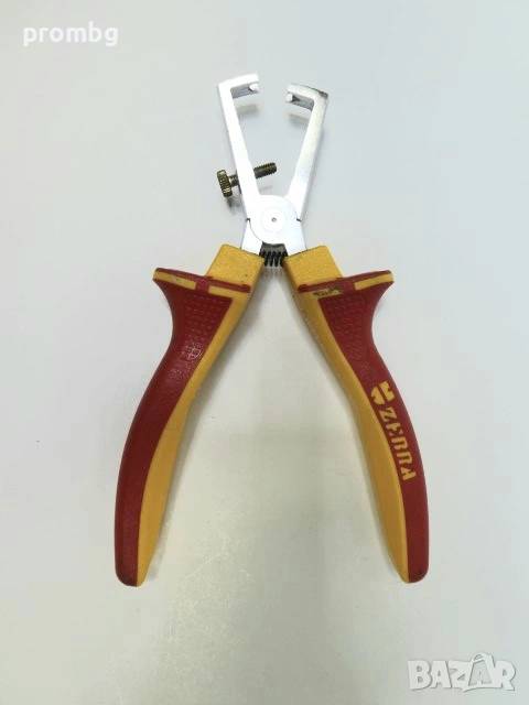 Клещи ZEBRA 160 мм, 1000 V, за оголване на кабел, сваляне на изолация, произведени в Германия. В отлично състояние. Посредством месингов болт с контра гайка се извършва настройка на дебелината на кабела за заголване.