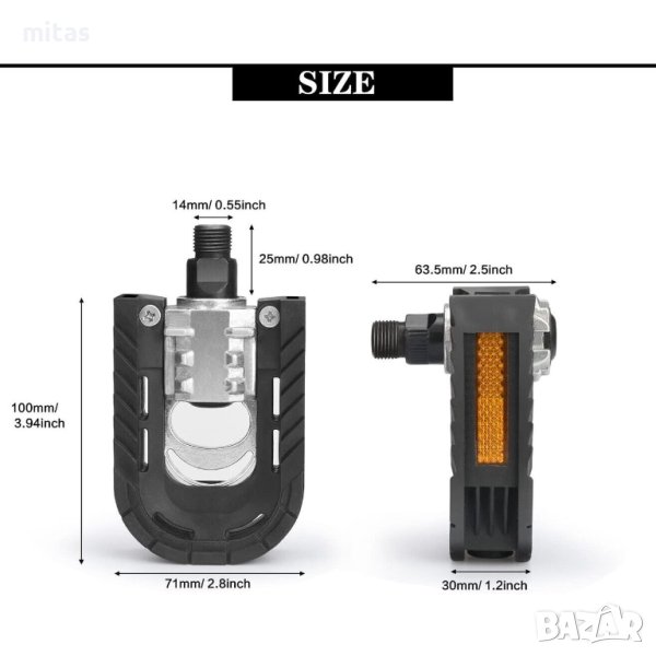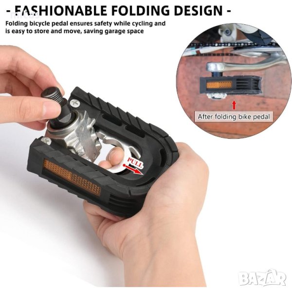 * Моден сгъваем дизайн - Сгъваемият велосипеден педал осигурява безопасност по време на колоездене и е лесен за съхранение и преместване, спестявайки място в гаража