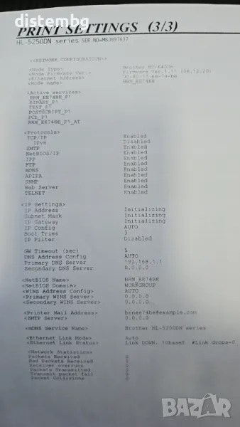 Лазерен принтер Brother HL-5250DN → Обява 41530881