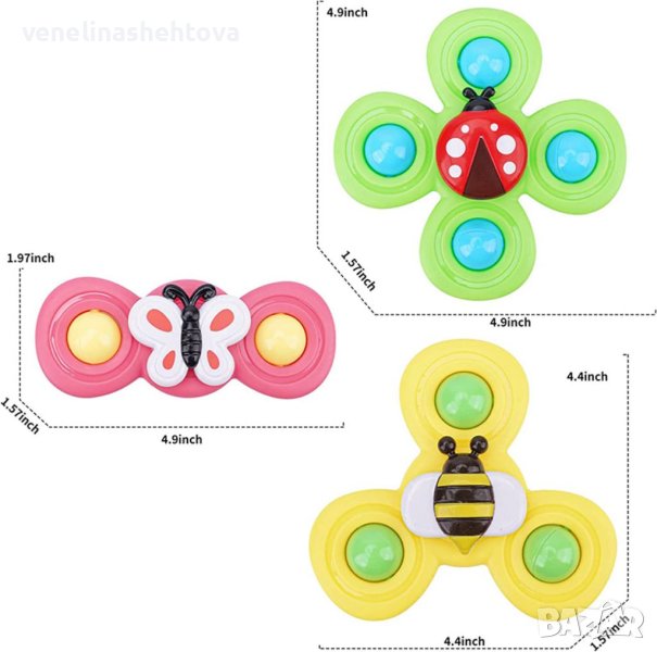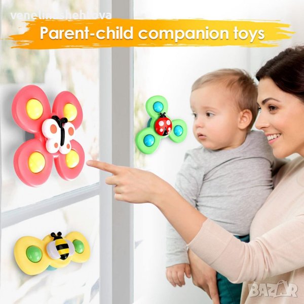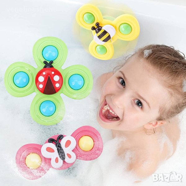 Комплект 3 броя бебешки играчки спинери мек силикон с вендуза Насекоми и насекоми и цветя