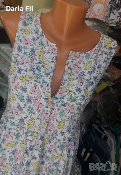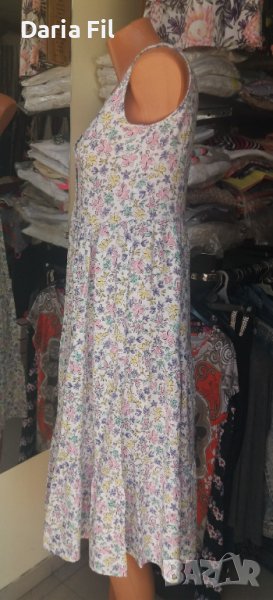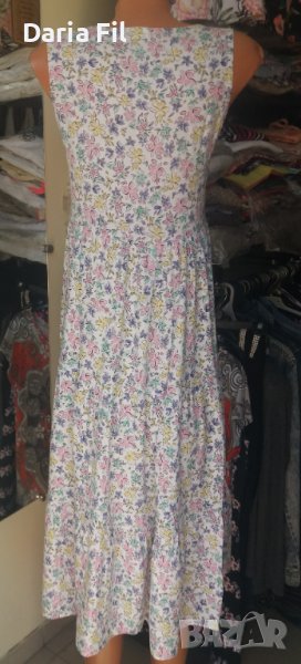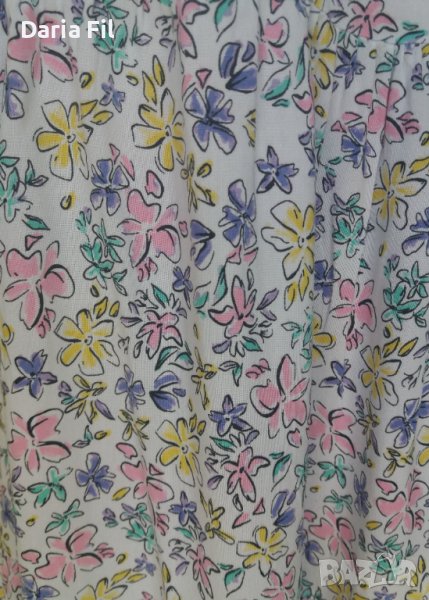 Бяла рокля в сини и розови цветчета на волани → Обява 41535380