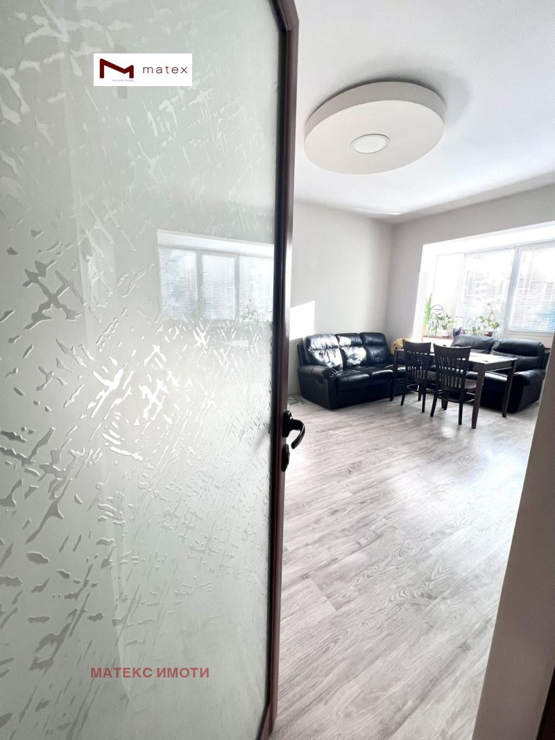 Разположен на първи жилищен етаж от пететажен панелен блок с добре поддържани общи части и контролиран достъп. Разпределението е следното: входно антре, хол, кухня, две просторни спални, тераса, баня и тоалетна отделно , килер, маза. Апартаментът се предлага с наличното обзавеждане!!