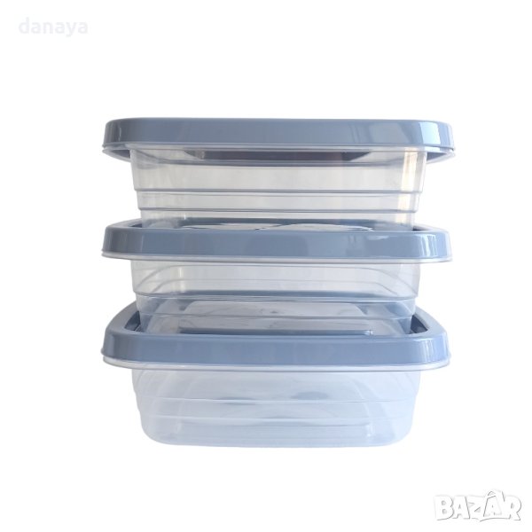 Комплект от 3 броя кутии за съхранение на хранителни продукти, в които може да разпределите своят обяд за работа или училище. Гъвкави капаци, лесно затваряне и отваряне. Може да се използват в микровълнова печка.