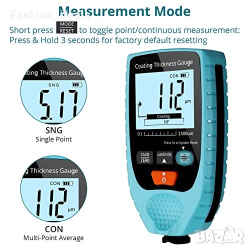 Измерва немагнитни и непроводими покрития върху съответните метални субстрати.