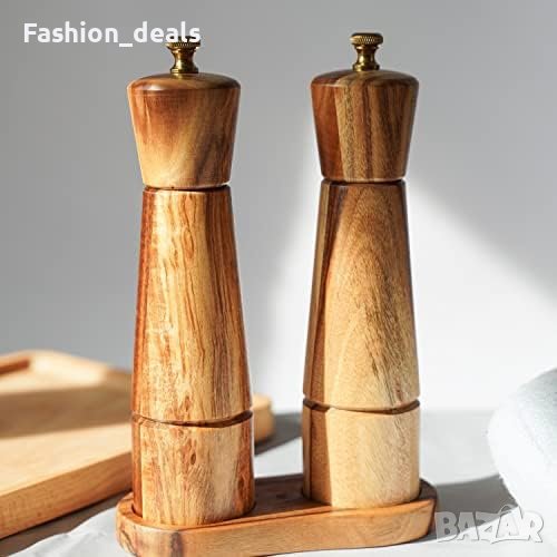 Нов Стилен Комплект керамична мелница за сол и пипер с поднос