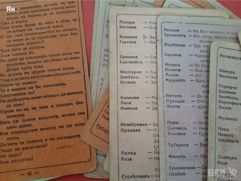 Стари Ретро Картончета с Разговор/Полилог между Цветята за Любовта-1930-те