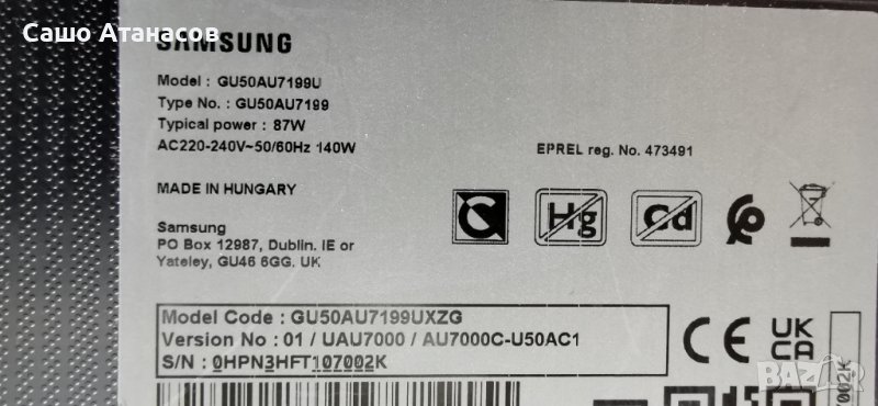 Main Board: BN96-53076J / AU7000 REV1.2 - не е наличен