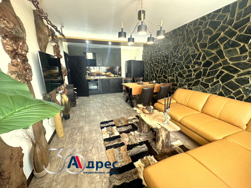 Двустаен апартамент, дизайнерско обзаведен с естествени материали, оборудван с висок клас ел. уреди и климатици Дайкин. На 7-ми от 8 етажна нова кооперация с отлични общи части и контрол на достъпа. Намира се в квартал Добруджански. Състои се от: коридор, дневна с кухня, спалня, баня с тоалетна и тераса. Настилките са от ламиниран паркет и гранитогрес, ел. външни щори.