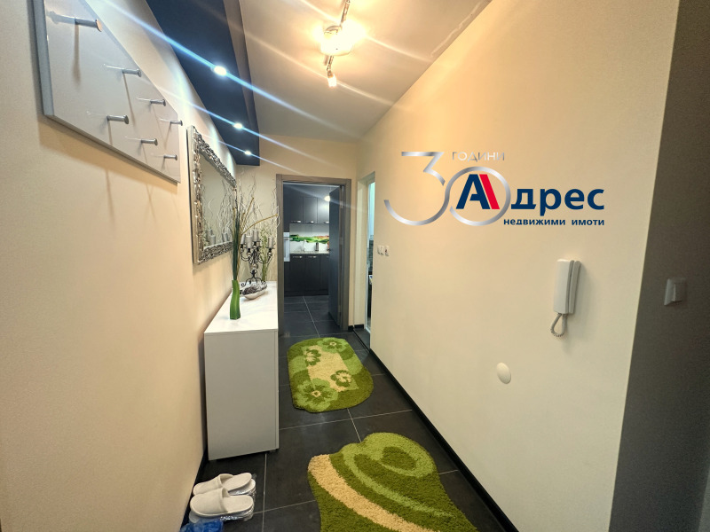 Двустаен апартамент, луксозно обзаведен, оборудван с висок клас ел. уреди и климатици. На 7-ми от 8 етажна нова кооперация, с отлични общи части и контрол на достъпа. Намира се в квартал Добруджански. Състои се от: коридор, дневна с кухня, спалня, баня с тоалетна. Настилките са от ламиниран паркет и гранитогрес, ел. външни щори.