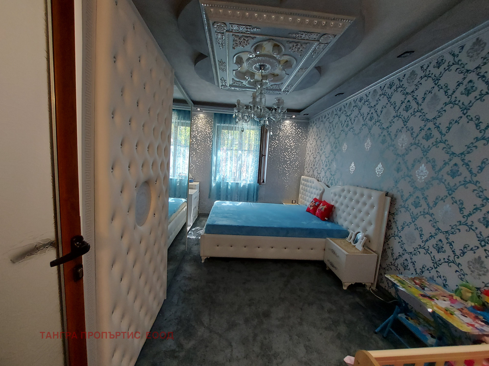 Тангра пропъртис предлага на Вашето внимание двустаен апартамент в Гр.Перник.В близост до ЖП гара ,детска градина и училище и много магазини. Директен излаз на скоростна магистрала. Жилището разполага с спална ,хол с кухненски бокс,тоалетна с баня и тераса. Към жилището има мазе и таванско помещение.
