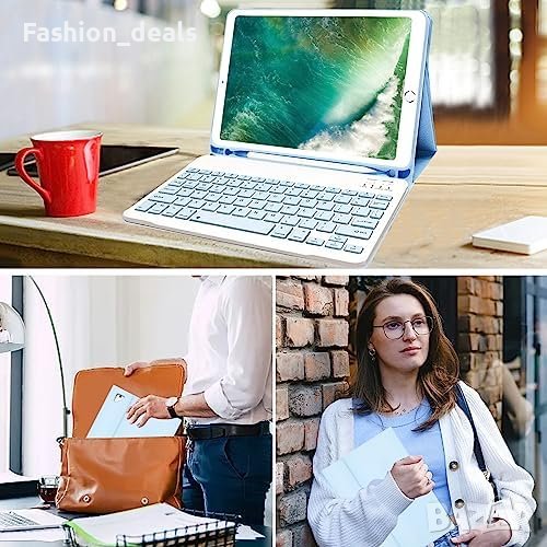 Съвместим с iPad 6-то поколение, iPad 5-то поколение, iPad Pro 9,7 инча, iPad Air 2, iPad Air, защитен смарт капак с безжична Bluetooth клавиатура