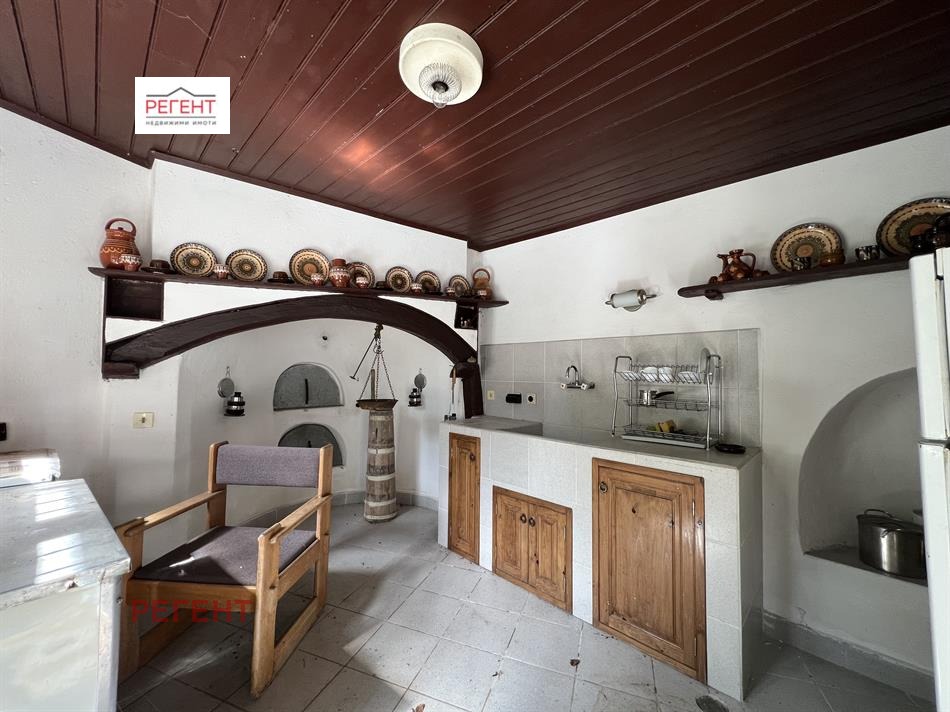 Трявна. Имотът е заобиколен от зеленина и балкан, предлага прекрасна гледка и представлява малко ранчо с дворно място с площ 2800 кв.м и съвместява три имота, състоящи се от три отделни къщи, които са в автентичният и типичен за региона Тревненски стил. Дворът е с настилка от плочи, терасиран и подравнен, ограден с камък. Първата къща разполага с просторна зала на първо ниво и вестибюл, разпределящ шест стаи, кухня, баня и тоалетна на второ ниво. В къщата автентичен дух придават и функциониращите джамали за отопление.