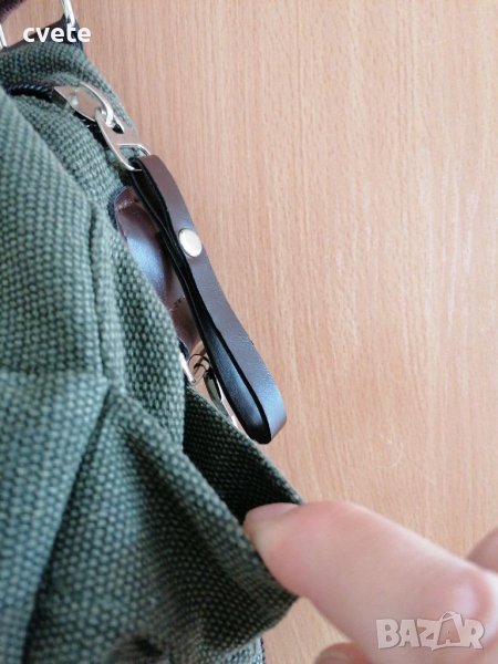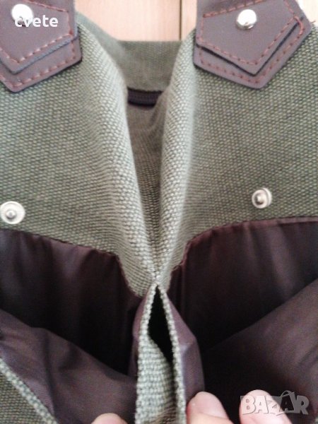Платът е зелен- брезентов, в комбинация с кафяво.