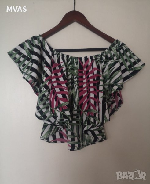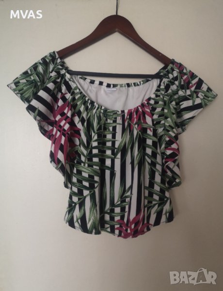 Нов къс топ с волани на Jacqueline de Young . Отдолу има бяло бюстие с ластик под гърдите, може да се носи върху сутиен или бански.