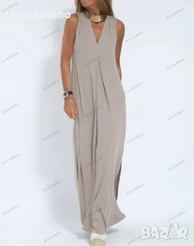Дамска дълга лятна рокля с V-образно деколте, 4цвята