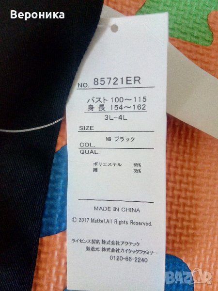 Нова оригинална престилка Барби от Мател за японският пазар с етикет. Размер: 3L - 4L / Бюст 100-115 см, Височина 154-162 см. Материал: Полиестер 65% и Памук 35%. Има леко намачкване от съхраняването.
