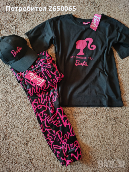 Орг.нов комплект в черно и розово Barbiе 100% памук тениска- 10евро, долнище плюш-лукс-10 евро,шапка Barbie - 10 евро.Комплекта - 30 евро. Изпращам с опция преглед и тест преди плащане! Тел: 0899 11 22 80
