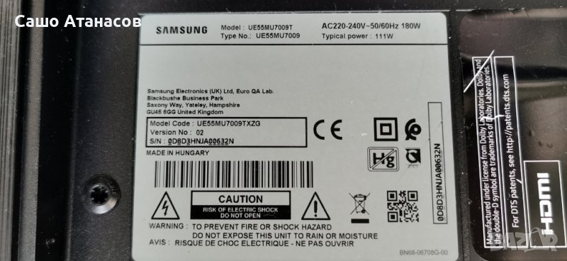 SAMSUNG UE55MU7009T със счупена матрица , BN44-00911A , BN41-02570B , WCM730Q , CY-SM055FLAV3H