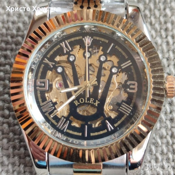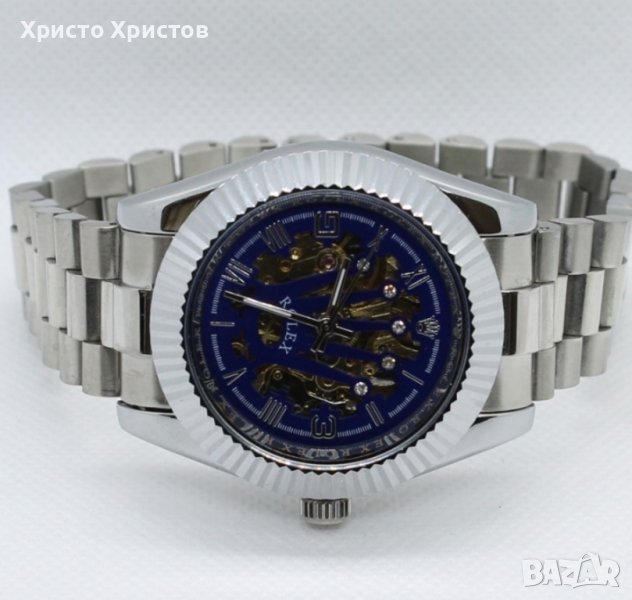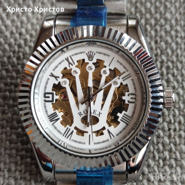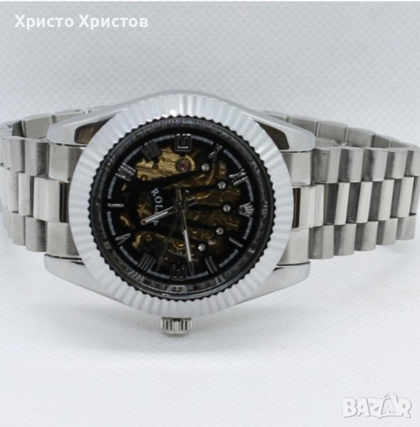 часовник Rolex Skeleton, механичен, автомат, различни цветове, полиран стоманен корпус и верижка, минерално стъкло. Много ефектни.