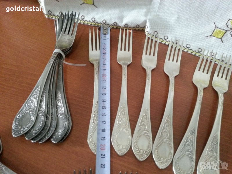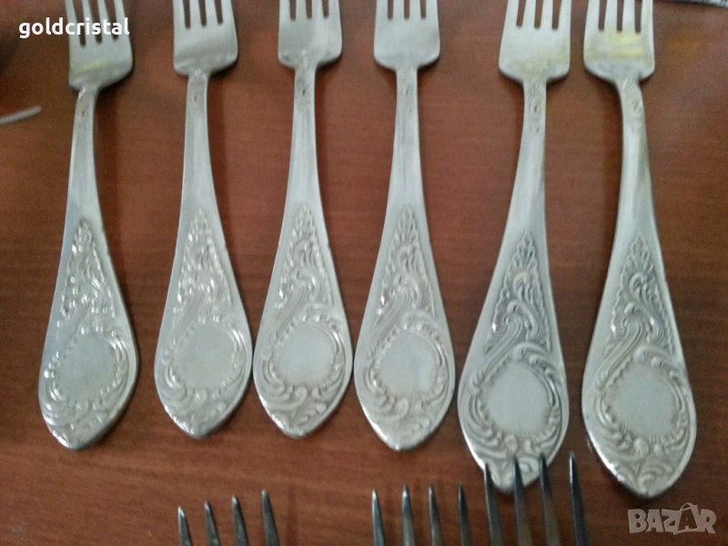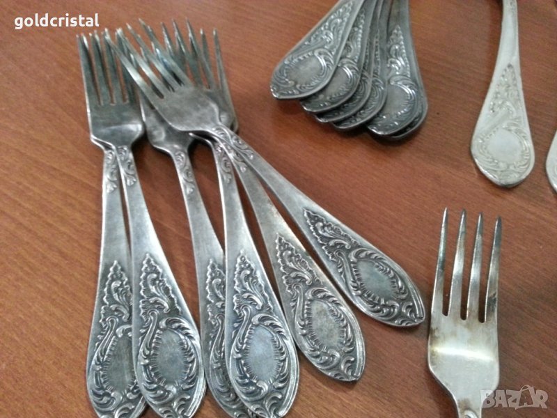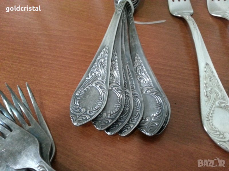 Руски прибори за хранене вилици мнц мелхиор дължина 20см 6 броя 39€дължина 18см 6 бр 60€ има и лъжици 20см 39€ малки лъжички 14см - 59€ сервиз комплект сет лот ретро арт декор винтидж колекция стари антикварни предмети обзавеждане за дома и семейството подходящи за подарък за ценители и колекционери