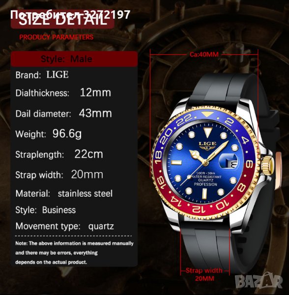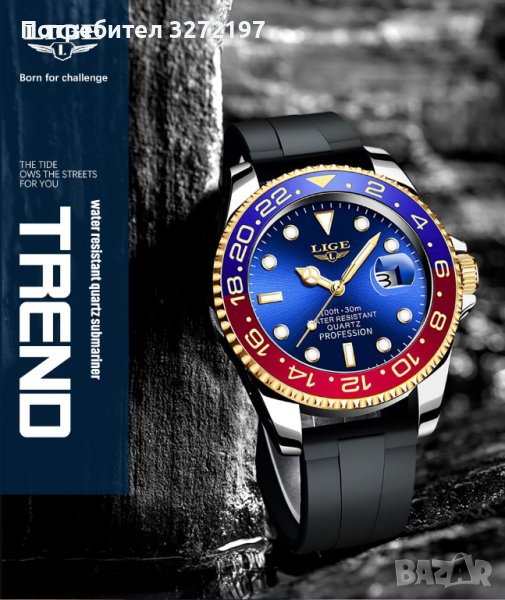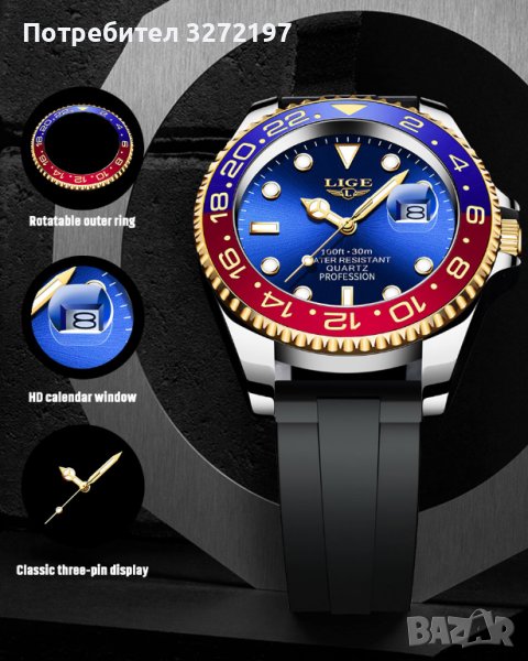 LIGE спортен,моден кварцов часовниk модел 2023,водоусточив,дата,въртящ се безел, уникален дизайн