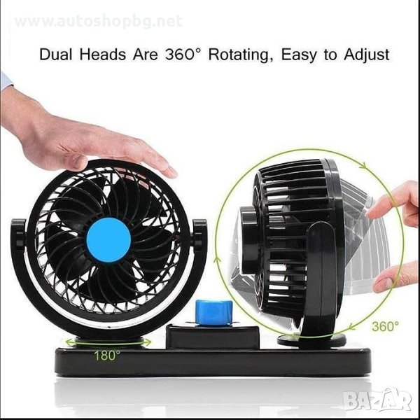 Вентилаторът е с въртящи се глави на 360 градуса. Има 2 степени с бутон за превключване, което допринася за максималния комфорт на водача.