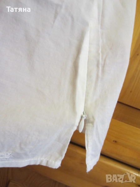 Снимки 5-7 ; БЕЛИ ,къси панталони.Материята е ЛЕН и ПАМУК; РАЗМЕР -S ; Дължината на дантелата е -5 см.
