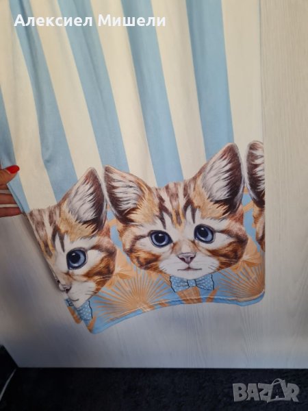 Разделям се тази прелестна лятна рокля на марката Wagoon с много сладко лого на котки. Носена е малко и в перфектно състояние. Има една незначителна забележка, която може да се поправи дори и на ръка - металното лого на талията е разшито от едната страна. Разбира се, цената е съобразена.