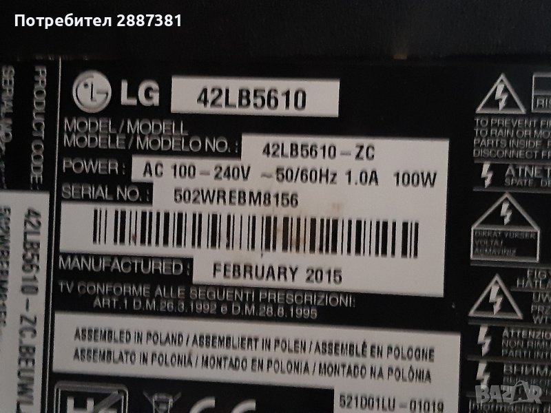 LG 42LB5610 на части, снимка 1 - Части и Платки - 41564583 LG 42LB5610 на части, снимка 2 - Части и Платки - 41564583 LG 42LB5610 на части, снимка 3 - Части и Платки - 41564583 LG 42LB5610 на части, снимка 4 - Части и Платки - 41564583 LG 42LB5610 на части, снимка 5 - Части и Платки - 41564583 LG 42LB5610 на части, снимка 6 - Части и Платки - 41564583 LG 42LB5610 на части, снимка 7 - Части и Платки - 41564583 LG 42LB5610 на части, снимка 8 - Части и Платки - 41564583 LG 42LB5610 на части, снимка 9 - Части и Платки - 41564583 LG 42LB5610 на части, снимка 10 - Части и Платки - 41564583 LG 42LB5610 на части, снимка 11 - Части и Платки - 41564583 LG 42LB5610 на части, снимка 12 - Части и Платки - 41564583 LG 42LB5610 на части, снимка 13 - Части и Платки - 41564583 1/13