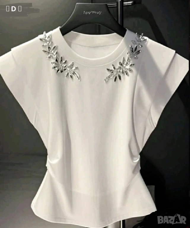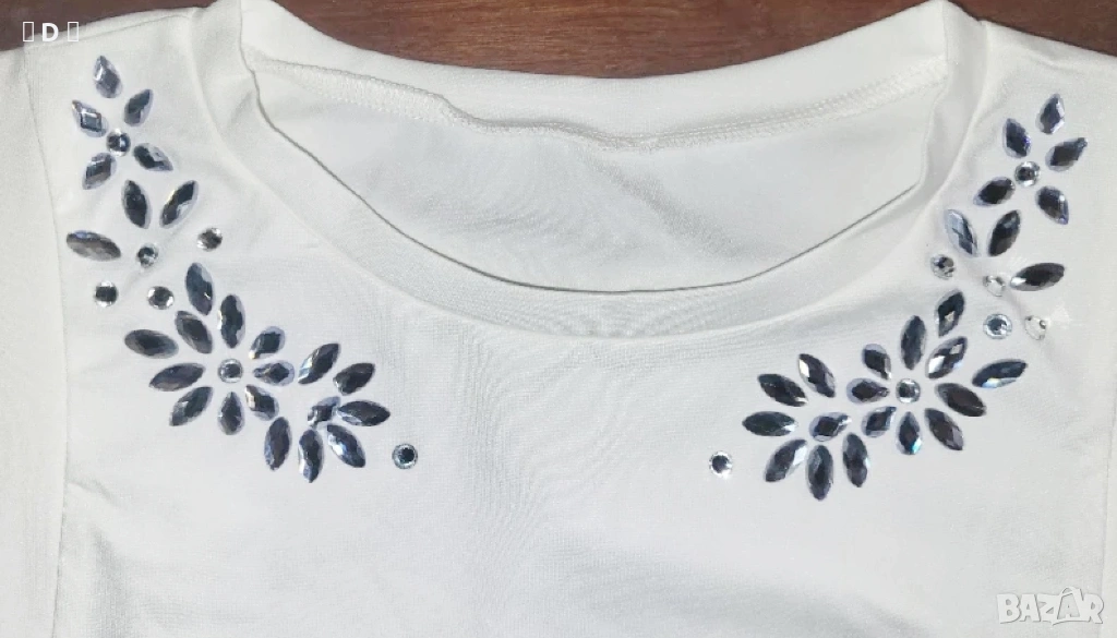 3. нова красива бяла тениска с камъни , размер: С / М