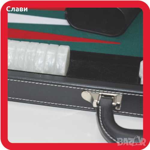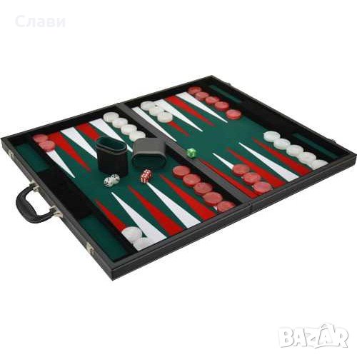 Игрално поле от зелен велур, с инкрустирани червени и бели капии.