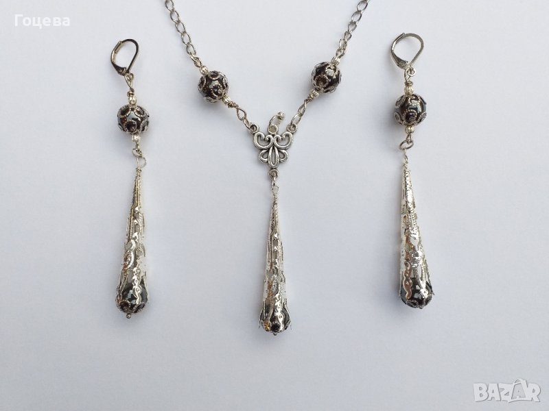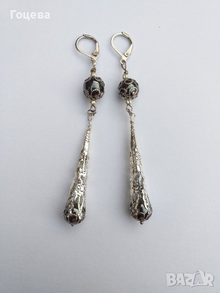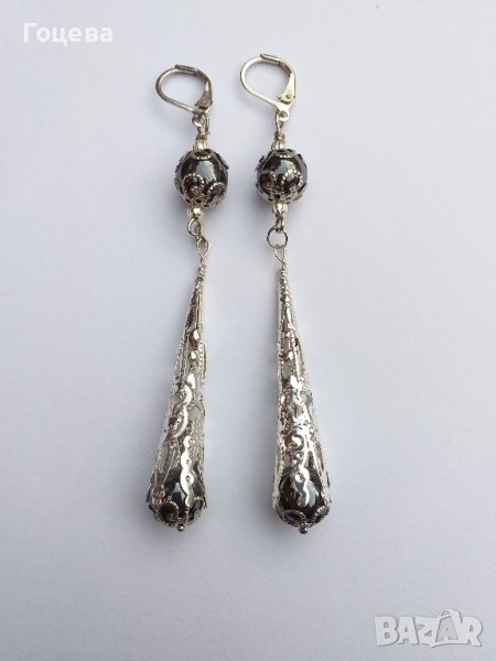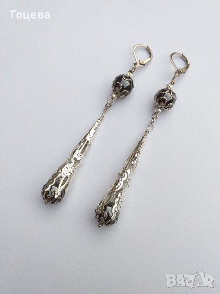 Разкошни обици с камъни Хематит и богати орнаменти в цвят сребро → Обява 41565971