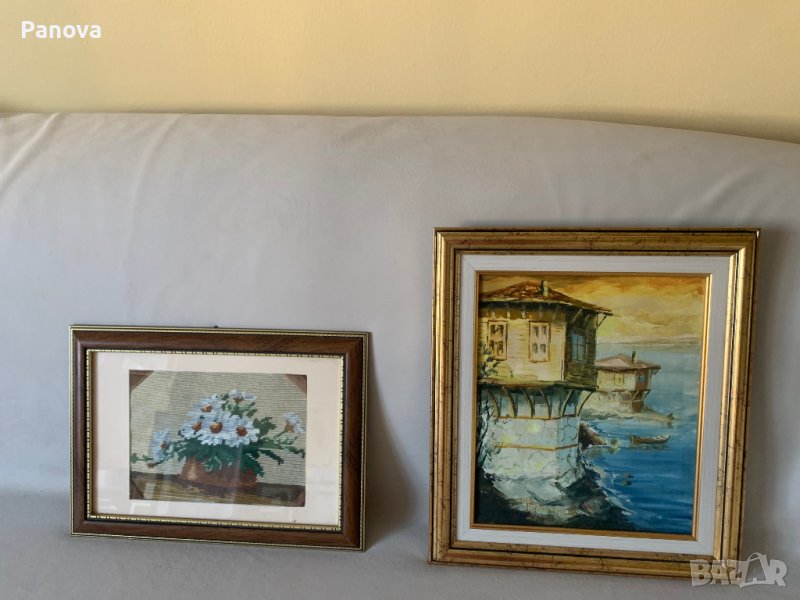 Продавам прекрасна картина с маслени бои и гоблен менче с цветя → Обява 41567590