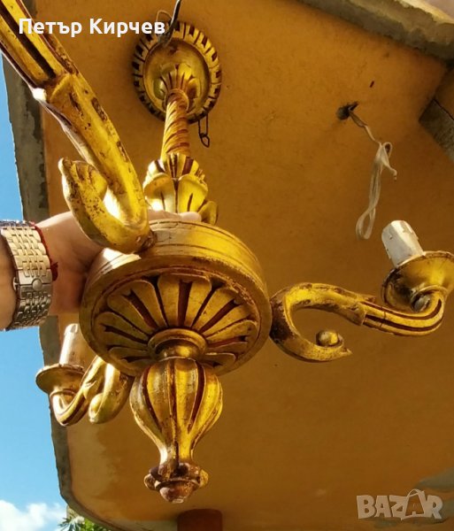Старинен полилей тройка-дърво с позлата-диаметър 45см с височина 70см-Перфектен!