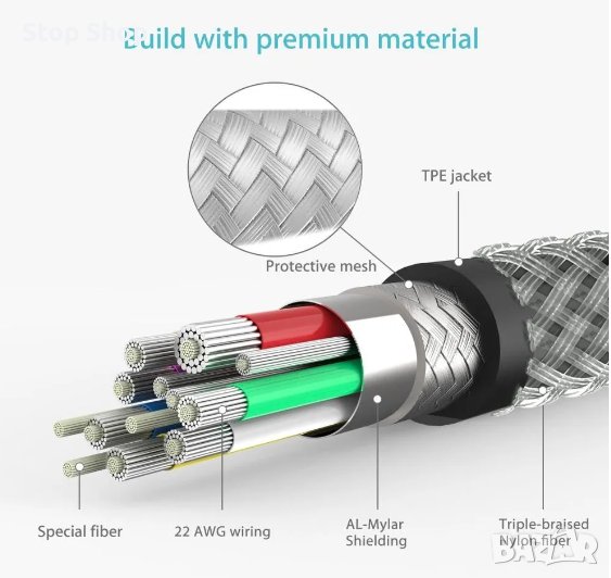 - [Безопасност от най-високо ниво] С придобиването на различни сертификати за безопасност като CE / FCC, безопасността е от най-висок клас в индустрията. Благодарение на обработката на двоен щит, прекъсване и повреда на връзката не възникват. Моля, обърнете внимание, че външната обиколка на кабела е направена от метал, така че е малко по-твърд от другите кабели, с които боравим.